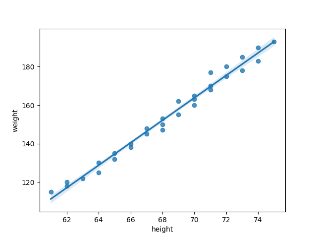 sns.regplot(data=df, x='height', y='weight')